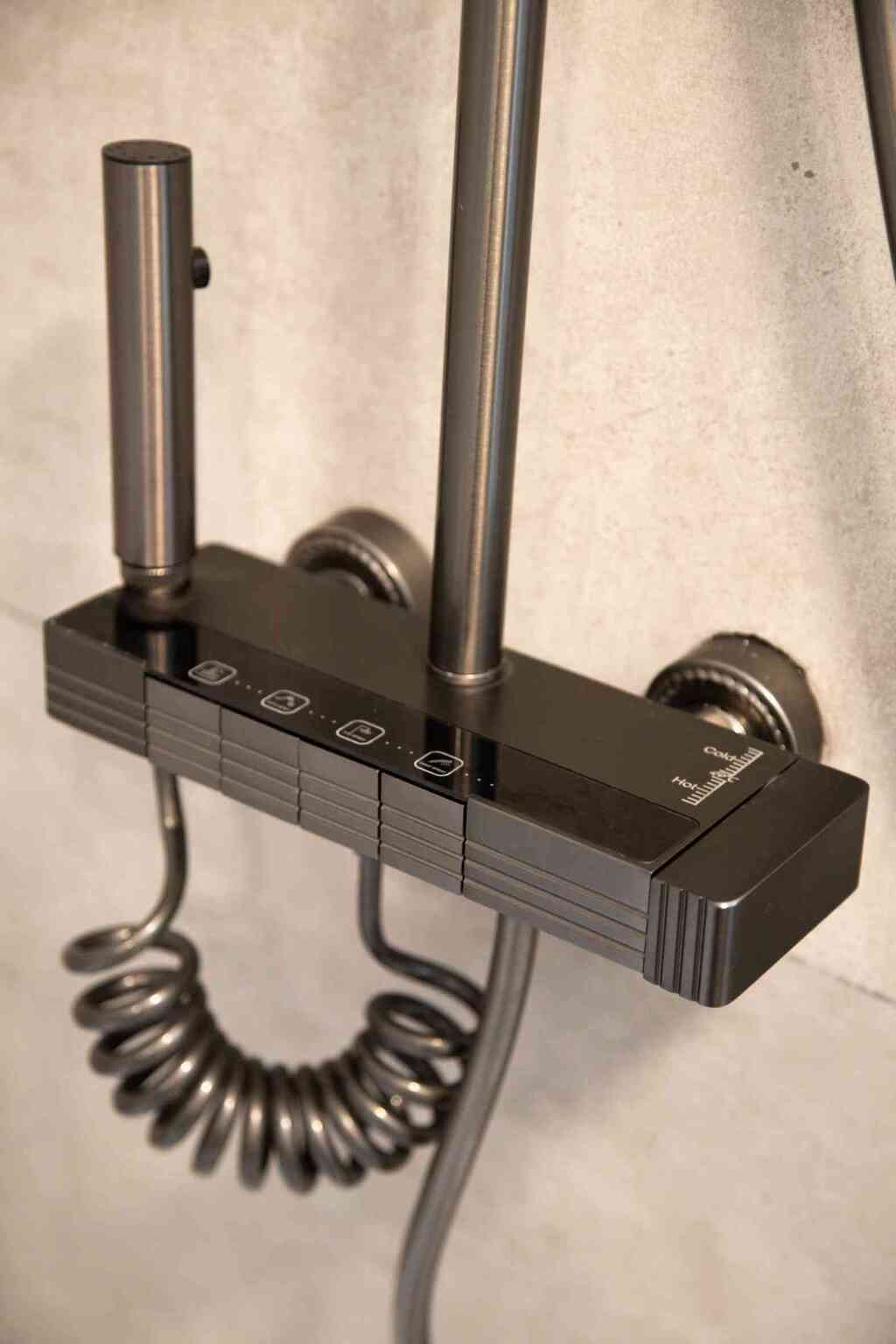 Duchador Multifuncional Monocomando de Acero Inoxidable con Botones Estilo Piano y Display Digital – Sin conexión eléctrica
